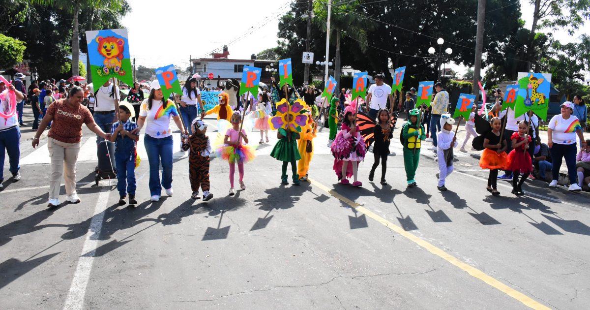 Con la participación de 11 preescolares, estancias infantiles y primarias, se llevó a cabo el desfile conmemorativo al comienzo de la Primavera. Los niños y niñas vistieron elegantes trajes alusivos a flores, mariposas, animalitos de la granja, abejas, así como también, hubo escuelas que representaron el colorido cultural y artístico de diversos países.