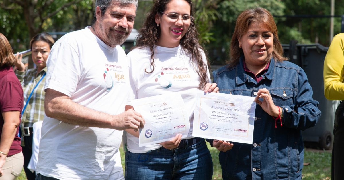 Reunidos en el kiosco del parque, la directora Hidrosistema de Córdoba, María del Rosario Palafox Aguilera, agradeció a las autoridades educativas y padres de familia por permitir a la comunidad estudiantil sumarse a las actividades para el cuidado del agua, invitándolos a enseñar a sus hermanos menores o mayores al igual que a los padres en no arrojar la basura a los ríos.