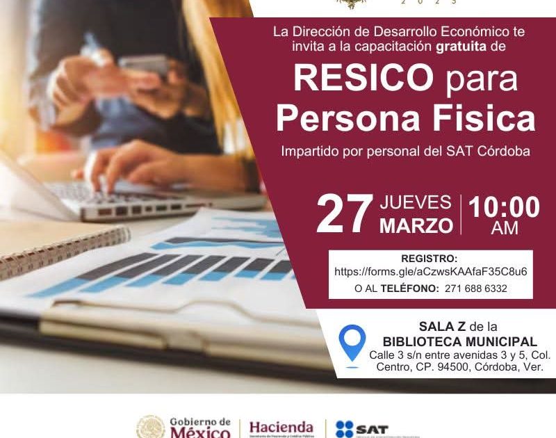 Córdoba, Ver.- El próximo jueves 27 de marzo, la oficina del SAT en Córdoba impartirá una conferencia informativa sobre el Régimen Simplificado de Confianza (Resico).