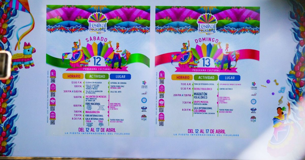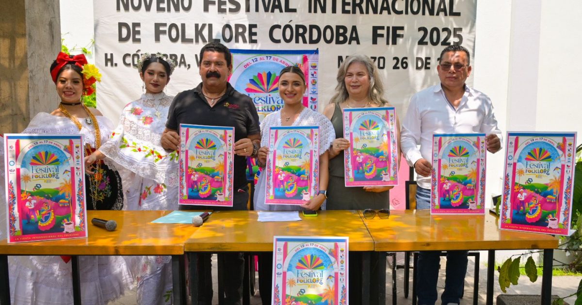 Córdoba, Ver., 26 de marzo de 2025.- El municipio de Córdoba se viste de alegría, color, magia y música en la novena edición del Festival Internacional del Folklore Córdoba 2025 que se llevará a cabo del 12 al 17 de abril, con la participación de más de mil 200 participantes de las delegaciones internacionales, nacionales, regionales y locales con sedes en la explanada del parque 21 de mayo, el Teatro Pedro Díaz, calle del Arte, Museo tratados de córdoba, la laguna “El Porvenir” y San Rafael Calería.