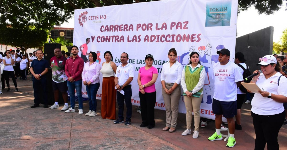 31 de marzo de 2025, Fortín, Ver. – Con el propósito de fomentar estilos de vida saludables y prevenir el consumo de drogas, más de 300 alumnos y padres de familia participaron en la exitosa Carrera por la Paz y contra las Adicciones, organizada por el CETis 143, cuya actividad contó con el respaldo del H. Ayuntamiento que encabeza el presidente municipal Gerardo Rosales Victoria, para brindar las condiciones y seguridad de los participantes.