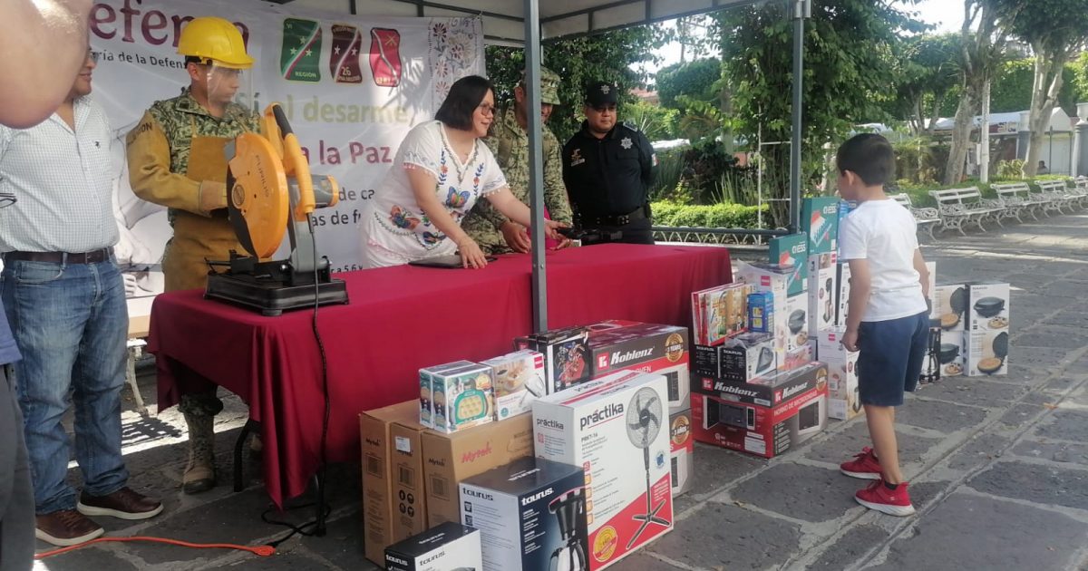 6 Abr. 2025. Huatusco, Ver. El día de ayer dio inicio la Campaña de canje de armas “Si al Desarme, Si a La Paz”, en el Parque Ignacio Zaragoza del Municipio de Huatusco, Ver.