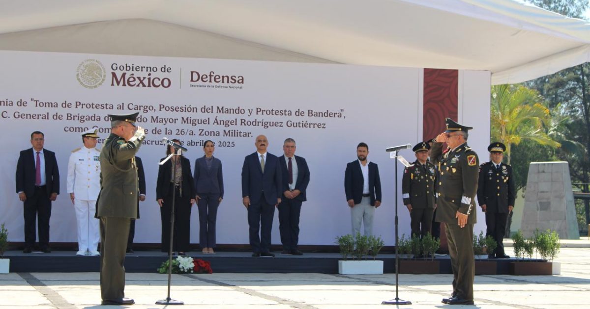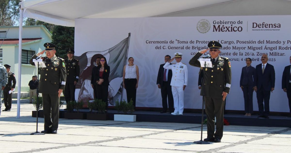 El Lencero, Ver., a 4 de abril de 2025.- En las instalaciones del 63/o. Batallón de Infantería se llevó a cabo la ceremonia de Toma de Protesta, Posesión al Cargo y Protesta de Bandera del Ciudadano General de Brigada de Estado Mayor Miguel Angel Rodríguez Gutiérrez, como Comandante de la 26/a. Zona Militar.