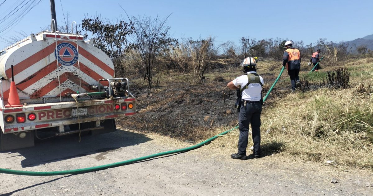 El C4 recibió un reporte sobre la quema de un pastizal a una cuadra de la parada de autobús de la línea Los Filtros, los primeros respondientes pidieron el apoyo a los cuerpos de auxilio para lograr cesar el fuego