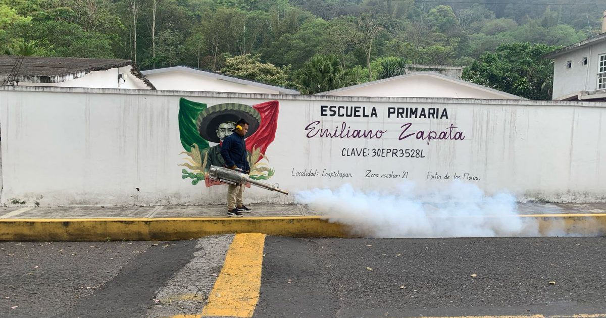 Fortín, Ver. – El H. Ayuntamiento de Fortín a través de la coordinación de vectores, llevó a cabo labores de fumigación en distintas instituciones educativas de la comunidad de Coapichapan como parte del proceso final para la certificación como espacios libres de criaderos de mosquitos, entre las escuelas destacan la Primaria Álvaro Obregón, el Jardín de Niños Andrés Quintana Roo, la Telesecundaria Gabriel García Márquez y la Primaria Emiliano Zapata.