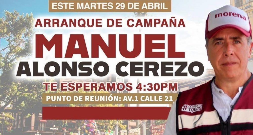 Córdoba, Veracruz, 28 de abril de 2025.- Manuel Alonso, candidato a la alcaldía de Córdoba por Morena y el PVEM, dio a conocer que este martes 29 de abril celebrará el arranque formal de su campaña con un recorrido a las 4:30 pm en la calle 21 y Av. 1 para caminar al parque 21 de mayo.