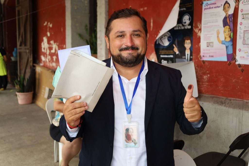 Fortín, Ver.— En un ambiente de tranquilidad y acompañado de su esposa, Eduardo Alonso “Pollos Charly” acudió a emitir su voto este domingo, reafirmando su compromiso con la democracia y el futuro de la comunidad.