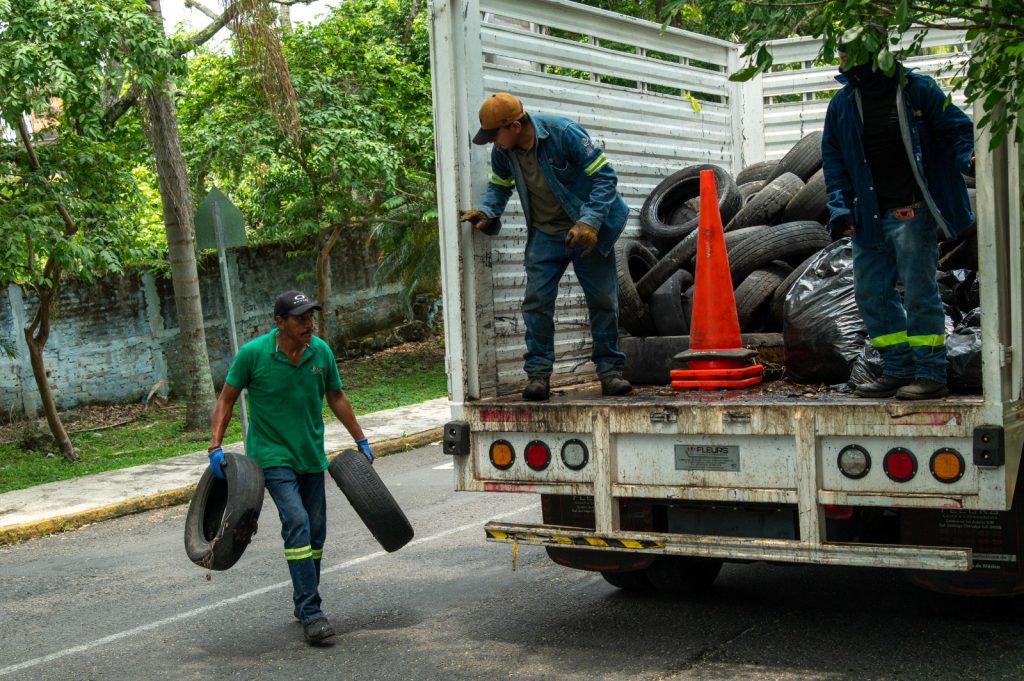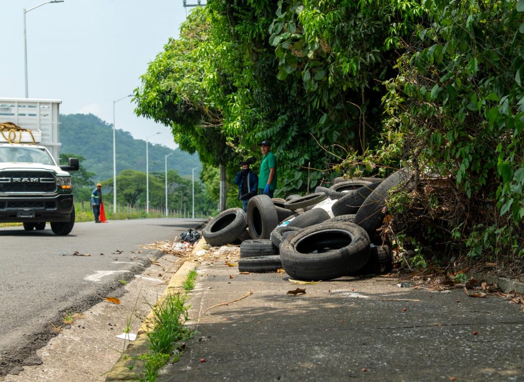 Asimismo, personal de Limpia Pública realizó la recolección de llantas ubicadas en la vía pública en la zona de Agustín Millán y boulevard USBI basurero clandestino.