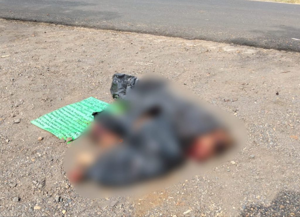 También informó que en el lugar del hallazgo, la policía encontró una cartulina con mensaje de advertencia y firmada por un grupo de la delincuencia organizada.