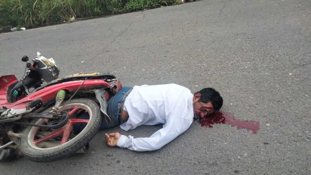 El percance ocurrió a la altura del paraje conocido como “La Hacienda”, donde Peña, a bordo de una motocicleta Italika semiautomática, perdió el control debido al exceso de velocidad combinado con el consumo de alcohol, lo que provocó que cayera violentamente al pavimento.