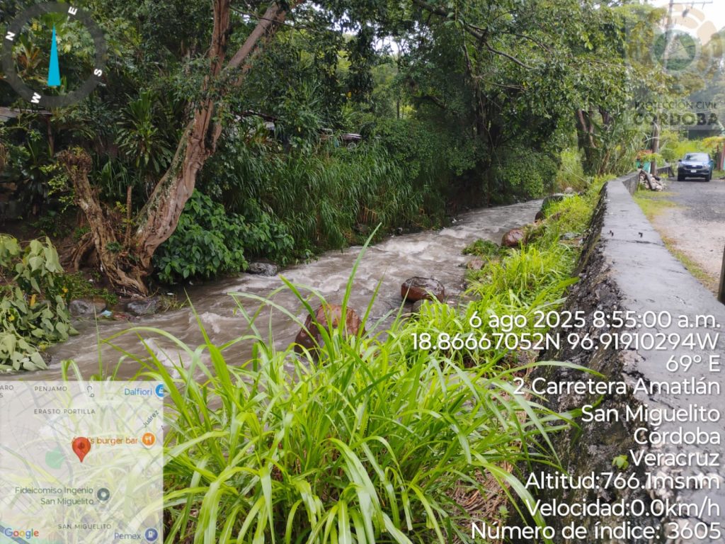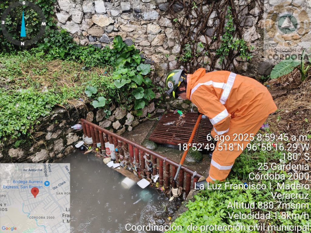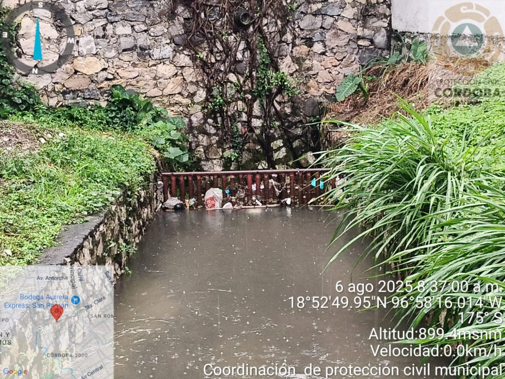 Córdoba, Ver., 06 de agosto de 2025.- Ante la presencia de lluvia en la ciudad, Protección Civil de Córdoba activó el “Operativo Tormenta”, donde mantiene el monitoreo de los ríos y arroyos que cruzan el municipio, asimismo, hace un llamado a la ciudadanía en evitar malas prácticas de tirar basura en la calle y en los cuerpos de agua.