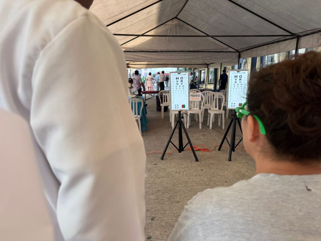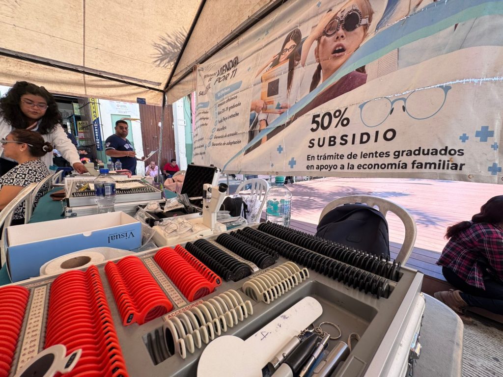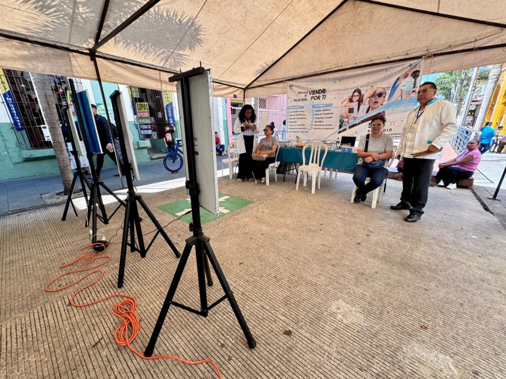 Se ofrece el examen de la vista de manera gratuita, apoyo en toma de signos vitales como glucosa y presión arterial y orientación en salud ocular.