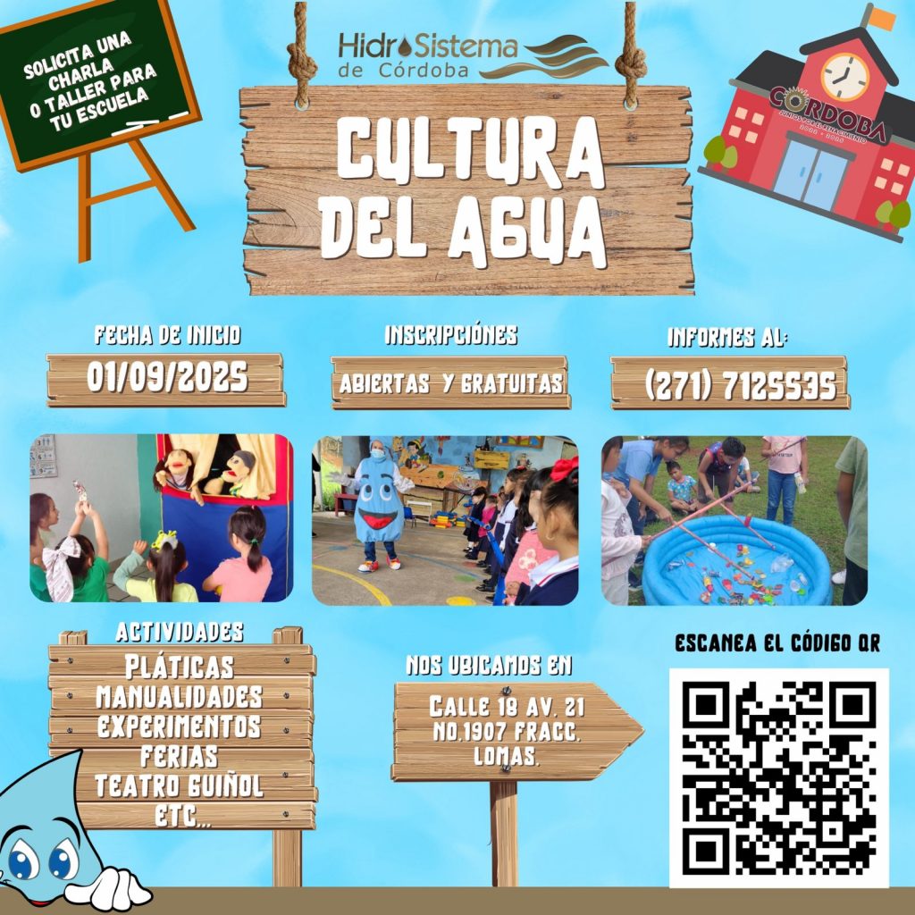 Córdoba, Ver. – Hidrosistema de Córdoba, a través del área de Cultura del Agua, hace una atenta invitación a directores, maestros y alumnos de instituciones educativas de todos los niveles, a participar en los cursos y talleres diseñados para fomentar el cuidado responsable de este recurso vital.