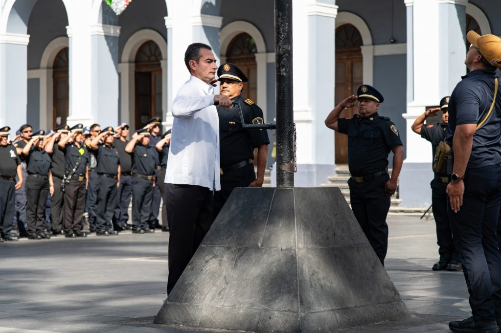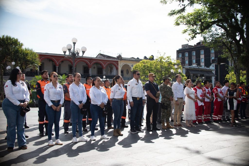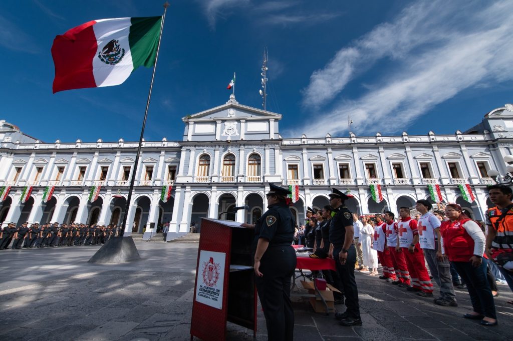 La ceremonia realizada en la explanada del parque 21 de Mayo, comenzó con el izamiento del Pabellón Tricolor a cargo del regidor sexto Sergio Armando de la Llave Migoni. El juramento a la bandera fue pronunciado por el bombero Heriberto Reyes Arévalo. Y el Himno Nacional Mexicano y de Veracruz fue entonado por los presentes con el acompañamiento de la Banda de Música Municipal.