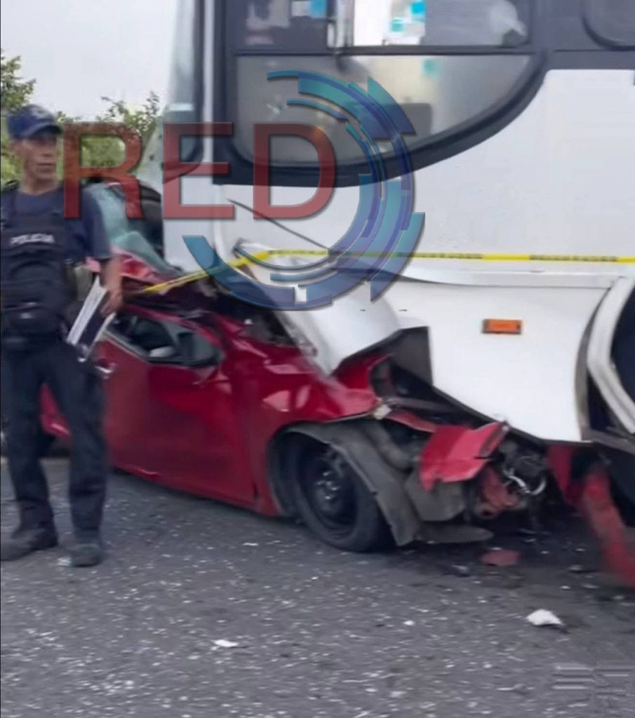 En el percance se vieron involucrados un autobús de la línea Sotavento y un automóvil particular de la marca Aveo, color rojo.