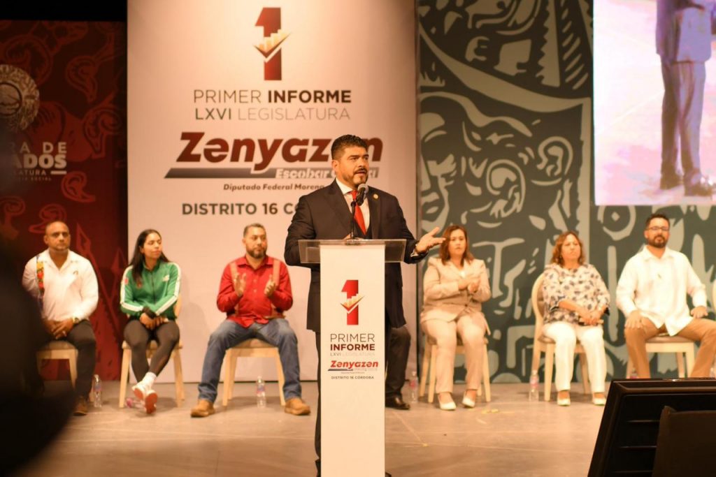Córdoba, Veracruz, 6 de septiembre de 2025.– El diputado federal por el Distrito 16 de Córdoba, Zenyazen Escobar García, presentó su primer informe de actividades legislativas, donde destacó que su labor se ha centrado en dos ejes: el impulso de reformas de gran calado en el Congreso de la Unión y la gestión directa en educación, salud e infraestructura en beneficio de las familias veracruzanas.