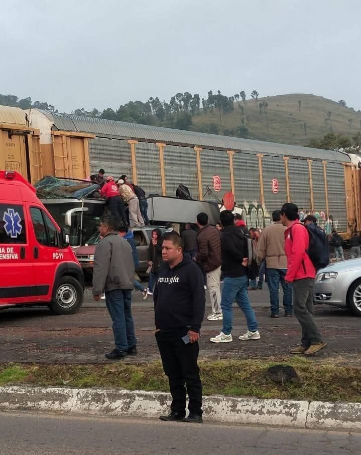 Atlacomulco, Edomex.– La mañana de este lunes 8 de septiembre se registró un fatal accidente sobre la carretera Maravatío–Atlacomulco, a la altura de la zona industrial, luego de que un tren embistiera a un autobús de pasajeros.