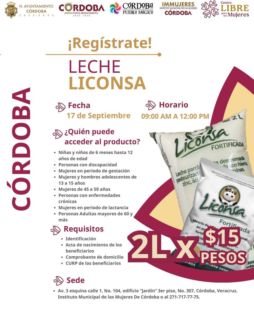 Para mayores informes se pueden comunicar al número telefónico 271-717-77-75 y así poder acceder al programa Leche Liconsa que el Ayuntamiento de Córdoba pone a disposición de la población.