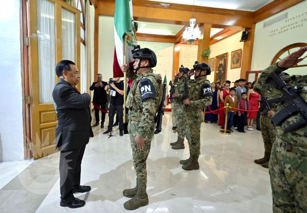 En el marco del 215 aniversario del Grito de Dolores con una plaza cívica abarrotada por niños, niñas, jóvenes y adultos, la ceremonia solemne dio inicio cerca de las 23:00 horas, en el interior del Palacio Municipal, donde integrantes de la comuna edilicia e invitados especiales, así como directores, coordinadores y jefes de área del Ayuntamiento, acompañaron al Dr. Juan Martínez Flores para recibir al Lábaro Patrio, escoltado por elementos de la Marina, y llevar a cabo el tradicional Grito de Independencia.