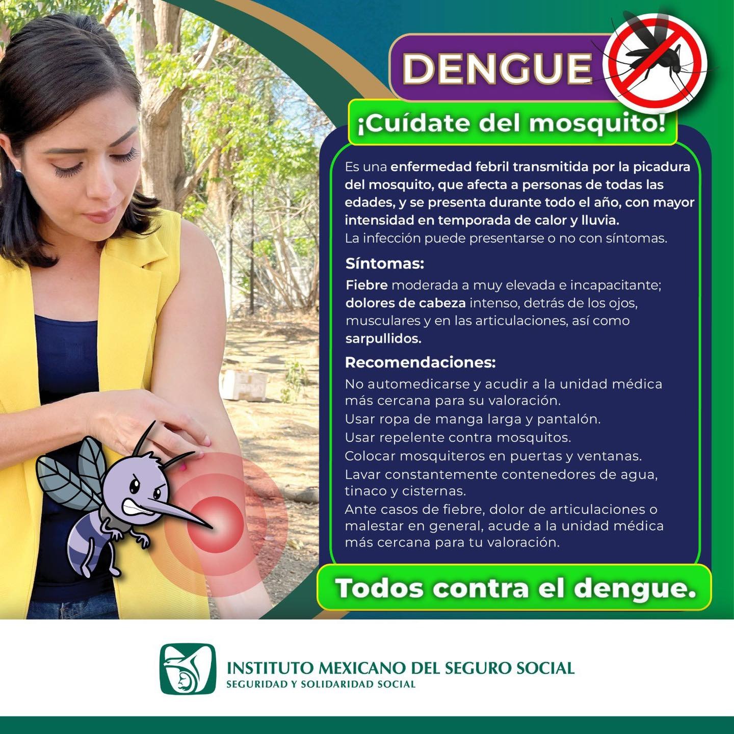 El Instituto Mexicano del Seguro Social (IMSS) en Veracruz Sur informa a la población en general a cerca del dengue, enfermedad viral que se transmite a las personas por la picadura de un mosquito infectado, el Aedes aegypti.