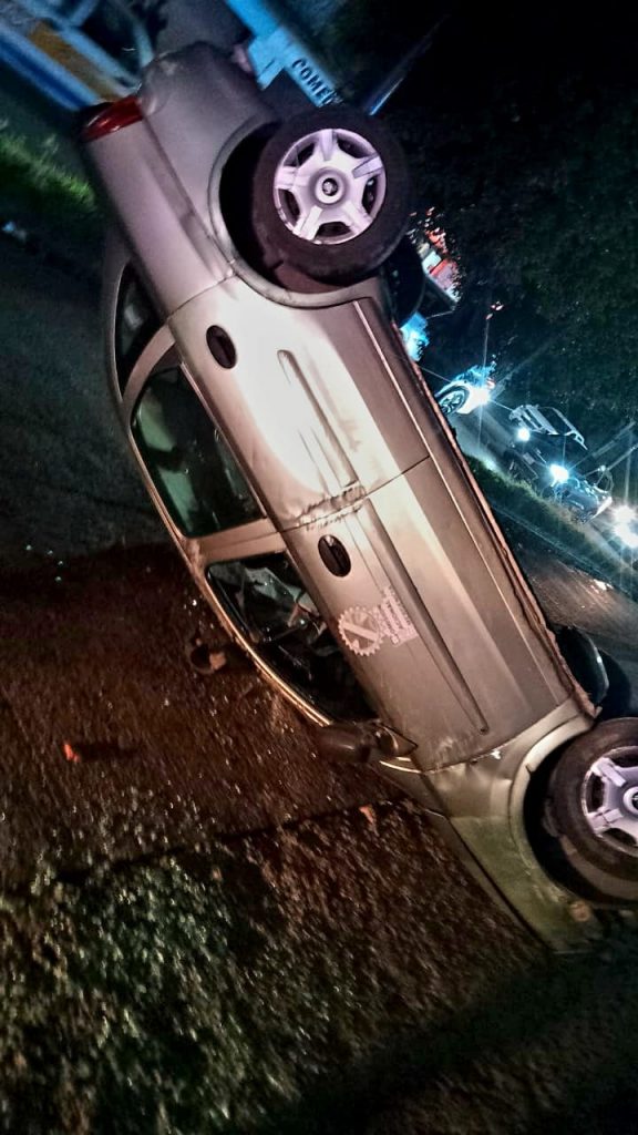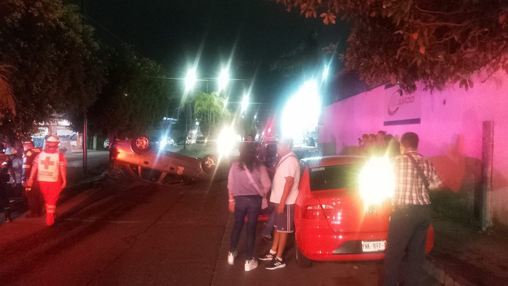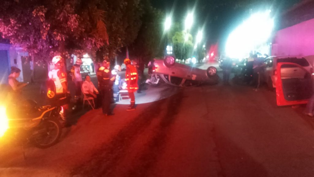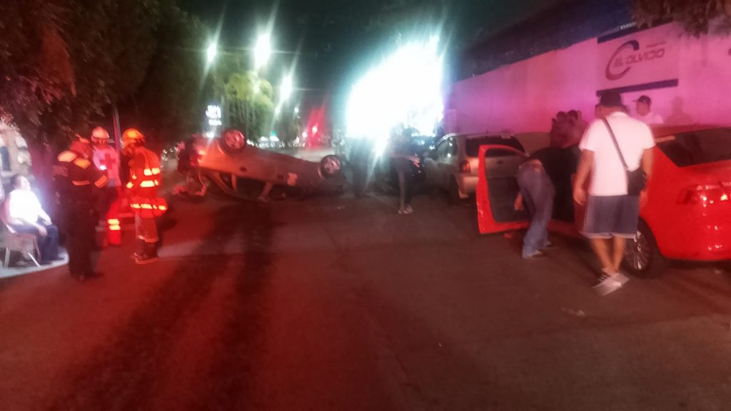 La unidad involucrada es un automóvil Chevrolet, el cual al volcarse ocasionó daños a tres vehículos que se encontraban estacionados en la zona.