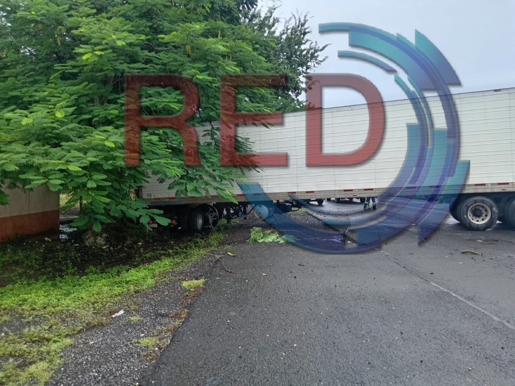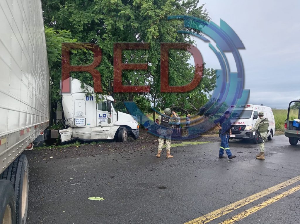 Cuitláhuac, Ver. – Un tractocamión que remolcaba una caja seca, se salió de la superficie de rodamiento en la carretera federal Córdoba – La Tinaja, a la altura del kilómetro 39, en el tramo que comprende La Quebradora y terminó chocando contra un árbol, lo que derivó en el cierre parcial de la carretera.