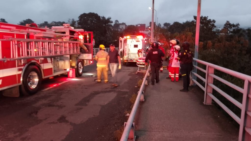 Una ambulancia ingresó por la parte baja del puente, donde el terreno es más accesible, para asegurar el descenso del lesionado y trasladarlo a un hospital para recibir atención médica.