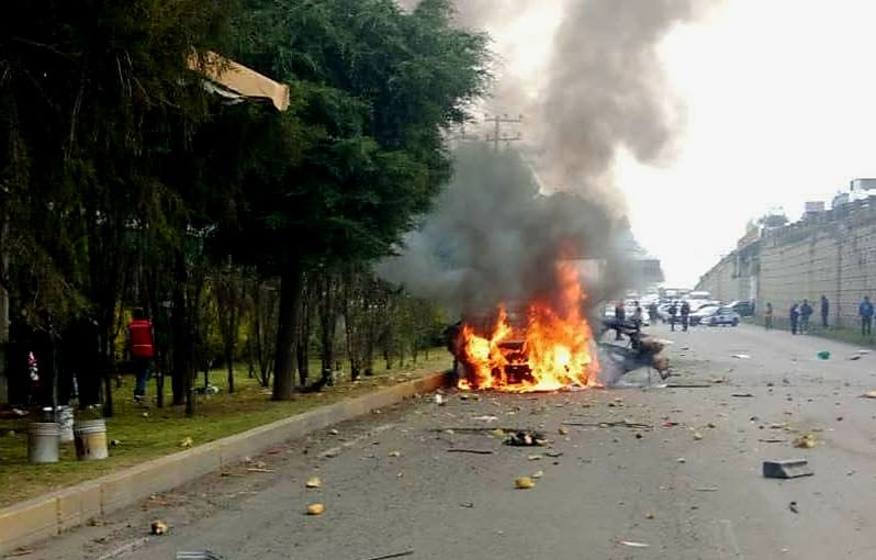 El incidente ocurrió frente a una plaza comercial con dirección hacia Toluca, zona que rápidamente quedó envuelta en humo y llamas que se elevaron varios metros. De acuerdo con testigos, el vehículo comenzó a arder sin previo aviso y, en cuestión de segundos, múltiples detonaciones provocaron que automovilistas y peatones corrieran para ponerse a salvo.