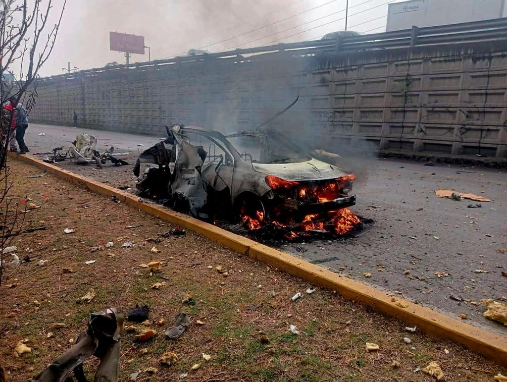 Elementos de seguridad acordonaron el área para permitir las labores de los bomberos, quienes trabajaron para sofocar el incendio y verificar que no quedaran restos de material explosivo que representaran un riesgo adicional.