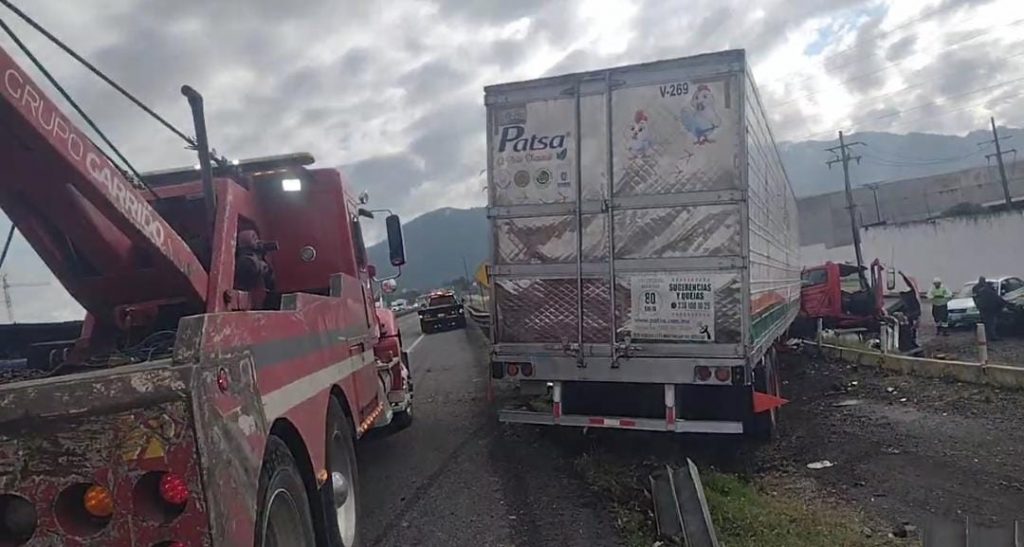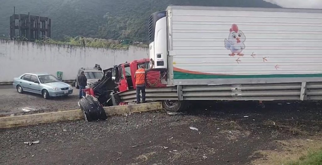 De acuerdo con la información recabada, el percance se registró en el carril de norte a sur, a la altura de la zona conocida como la Alcoholera, cuando el conductor de un tráiler acoplado a una caja seca descendía de la zona de Cumbres y perdió el control de la unidad, provocando que saliera de la cinta asfáltica.
