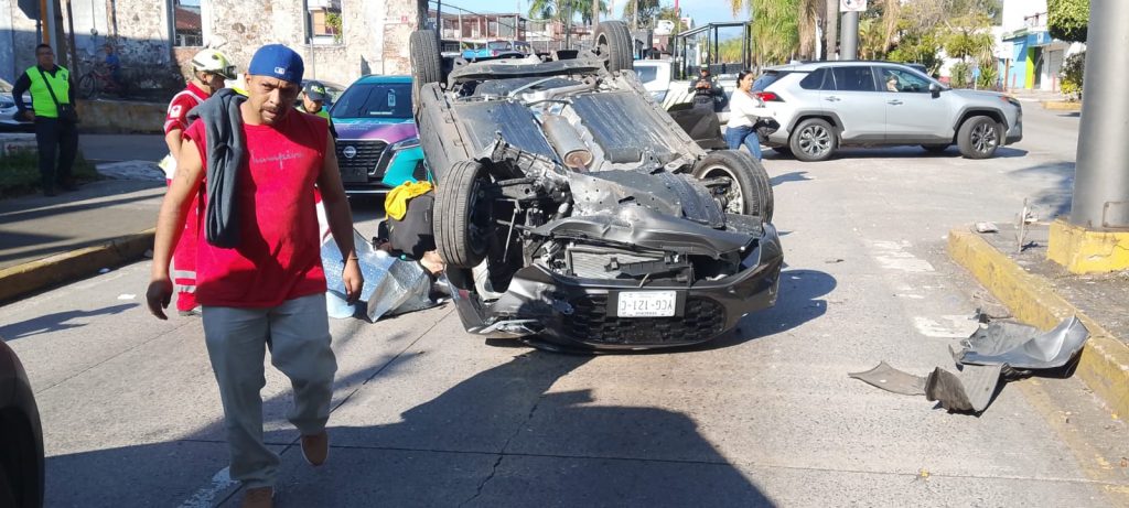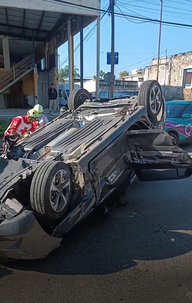 Córdoba, Ver.— Un aparatoso accidente vial se registró frente a la conocida Torre K, en la intersección del bulevar Fundadores de Córdoba y la calle 24, luego de que presuntamente uno de los conductores no respetara la luz del semáforo, lo que derivó en una fuerte colisión y posterior volcadura.