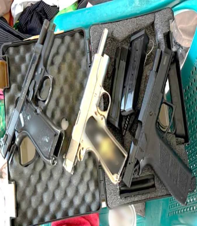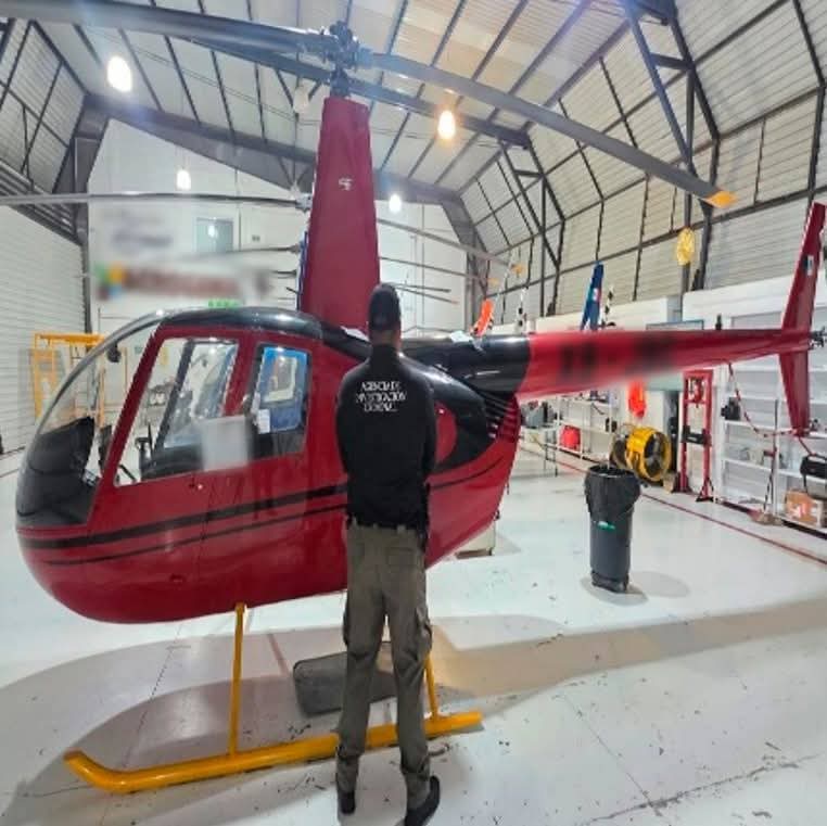 Entre lo decomisado se encuentran tres armas cortas, tres cargadores, 45 cartuchos, así como siete aeronaves: seis de ala rotativa y una de ala fija, además de un fuselaje y un vehículo.