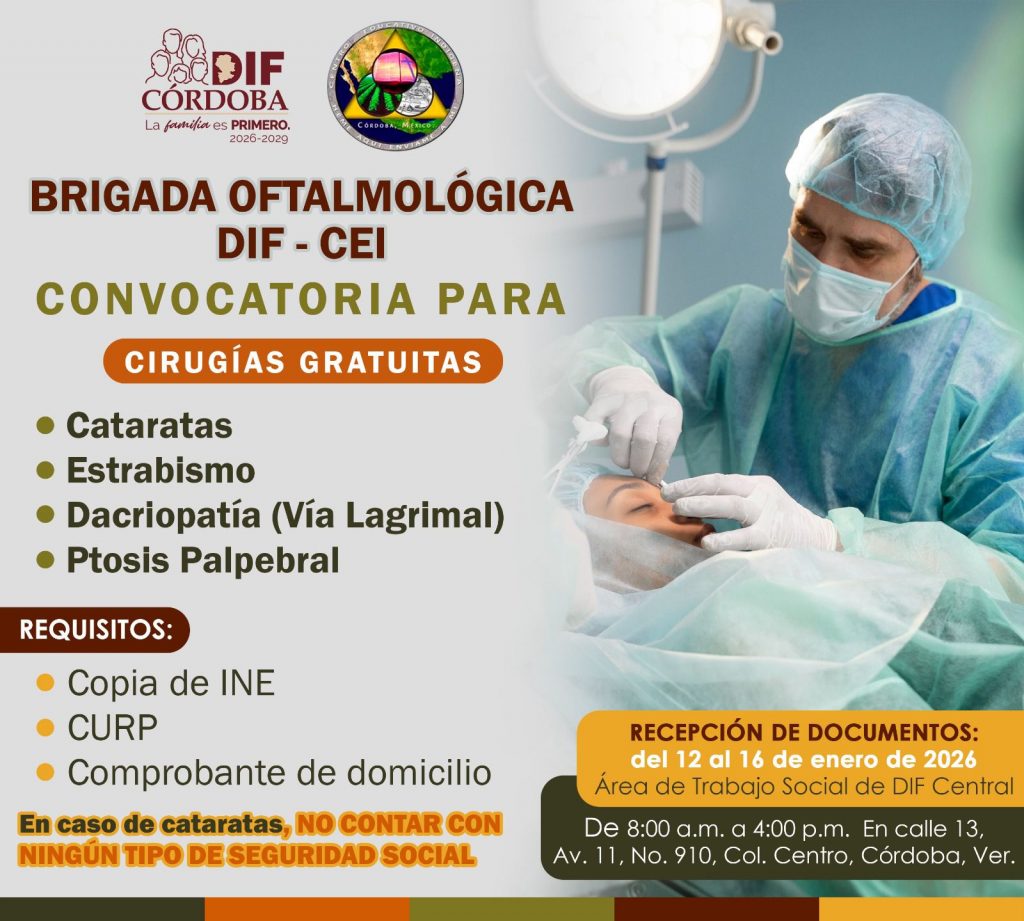 Córdoba, Ver. – Con el objetivo de contribuir a la salud visual de la población y mejorar su calidad de vida, el Sistema Municipal para el Desarrollo Integral de la Familia (SMDIF) en colaboración con el Centro Educativo Indígena A.C pone en marcha la Campaña de Cirugías Oftalmológicas Gratuitas, dirigida a personas que presentan diversos padecimientos visuales y que requieren atención médica especializada.