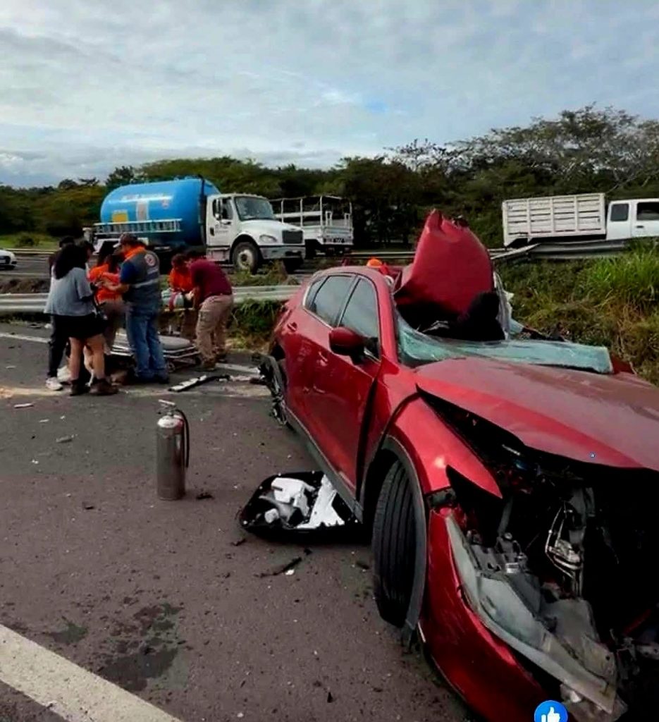 De acuerdo con los primeros reportes, el incidente ocurrió cuando la pesada estructura se desprendió del tractocamión y cayó varios metros, impactando un automóvil Mazda color rojo que transitaba con dirección a Cardel. La conductora viajaba sola y llevaba consigo algunas mascotas, las cuales también resultaron con lesiones.