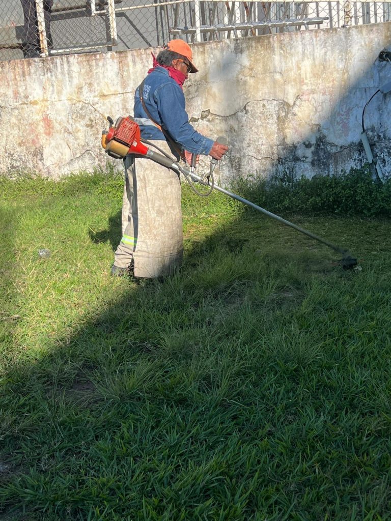 Si bien se trata de un espacio que requiere una intervención integral en su infraestructura, por ahora se trabaja en una primera etapa, mediante trabajos de chapeo del campo y mantenimiento de las áreas verdes, así como la limpieza general del inmueble, con el propósito de mantener la unidad en funcionamiento.