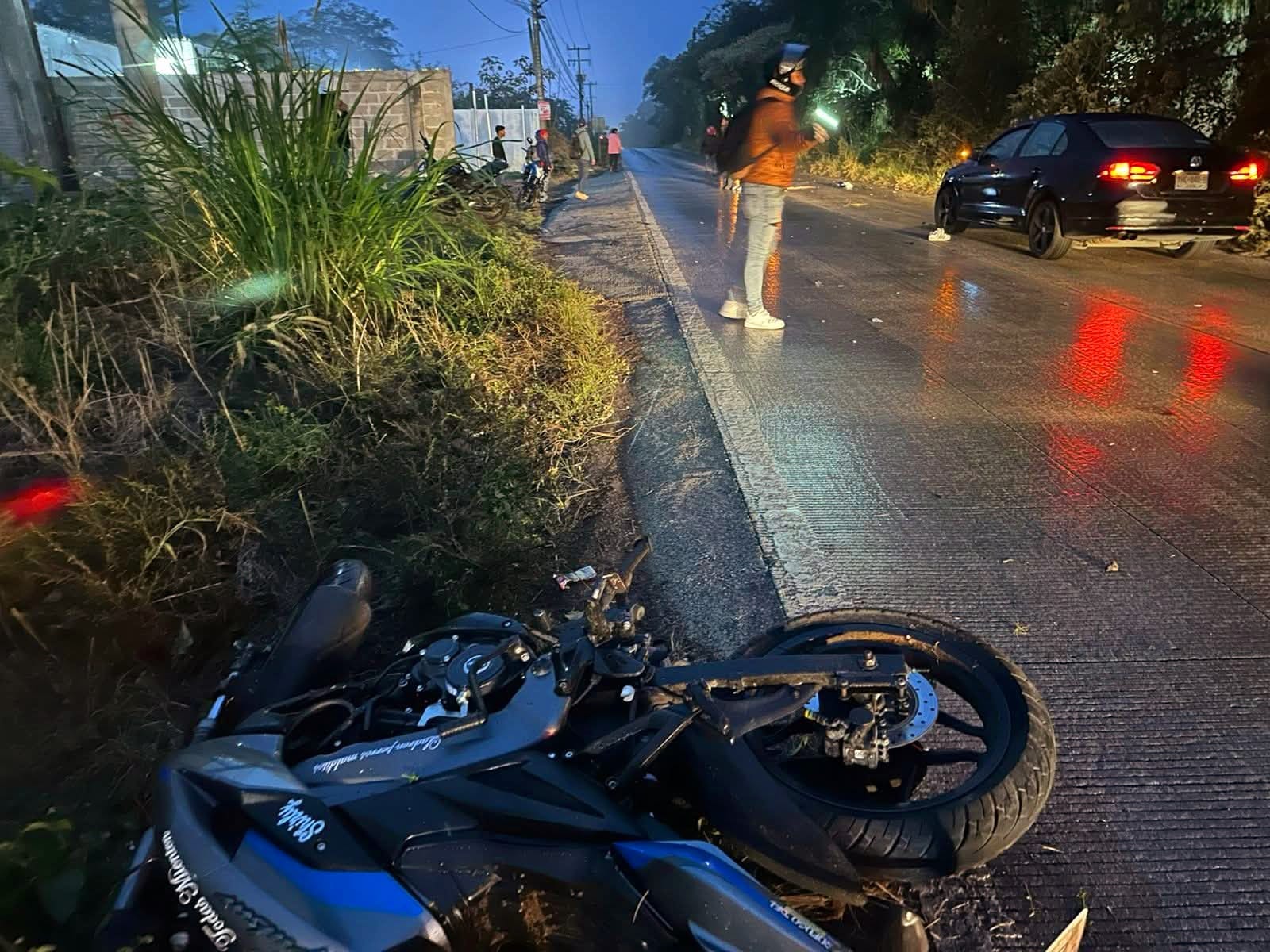 Emiliano Zapata, Ver.– La noche de este lunes se registró un fatal accidente vial que cobró la vida de un motociclista, luego de que se impactara contra un automóvil a la altura de las oficinas de iGas Natural, en este municipio.