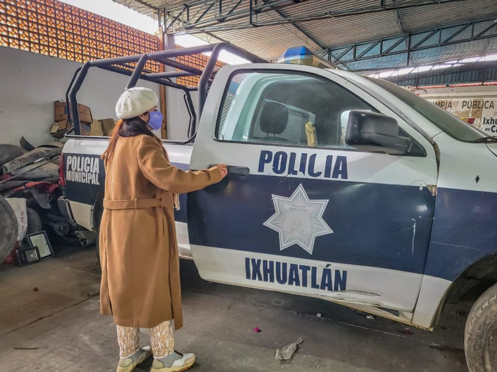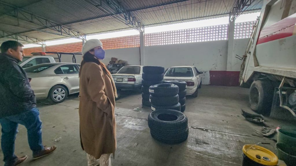 La munícipe acudió al salón social donde permanecen diversos objetos que fueron acumulados dentro de este espacio por la anterior administración municipal como adornos, estructuras, equipos, herramientas y material diverso, incluso unidades vehiculares con problemas mecánicos y en mal estado en general.