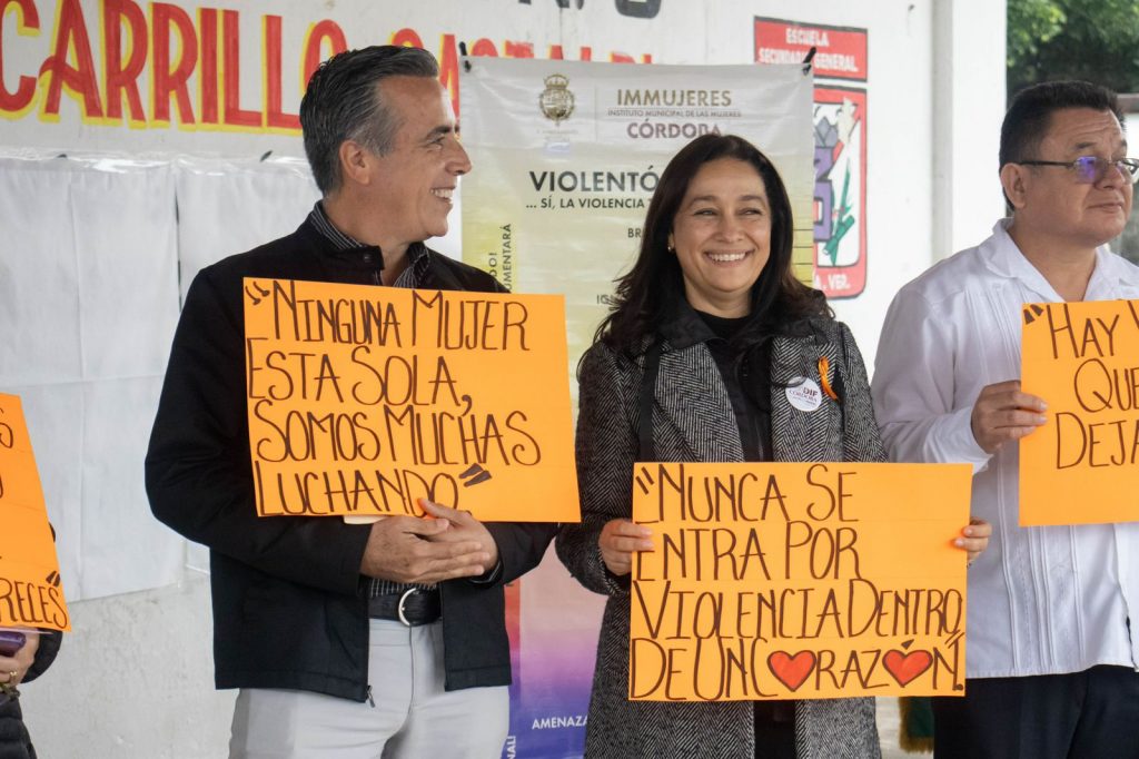 Córdoba, Ver. – La empatía y el cuidado mutuo son la base para construir entornos seguros para todas. Por ello, hoy la presidenta del Sistema DIF, Carolina Mendívil de Alonso, acompañó al presidente municipal Manuel Alonso Cerezo a una plática sobre la eliminación de la violencia contra mujeres y niñas en la secundaria general 3 “Carlos Arturo Carrillo Gastaldi”.