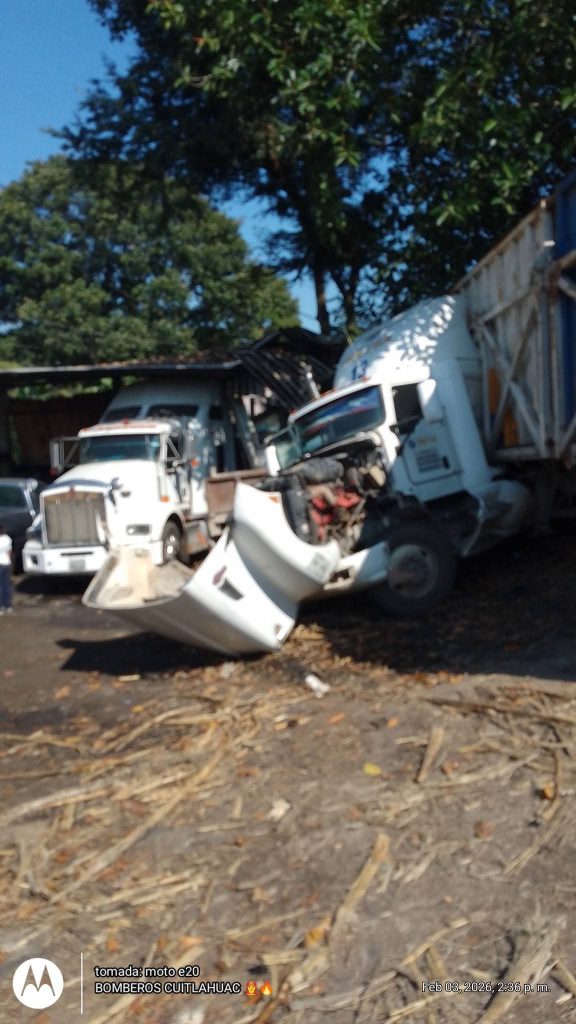 Cuitláhuac, Ver.- Tres personas resultaron lesionadas luego de un choque entre una carroza fúnebre y un tractocamión tipo full con doble jaula cañera, registrado la tarde de este martes sobre la carretera federal Córdoba–Veracruz, a la altura de la comunidad de Los Mangod.