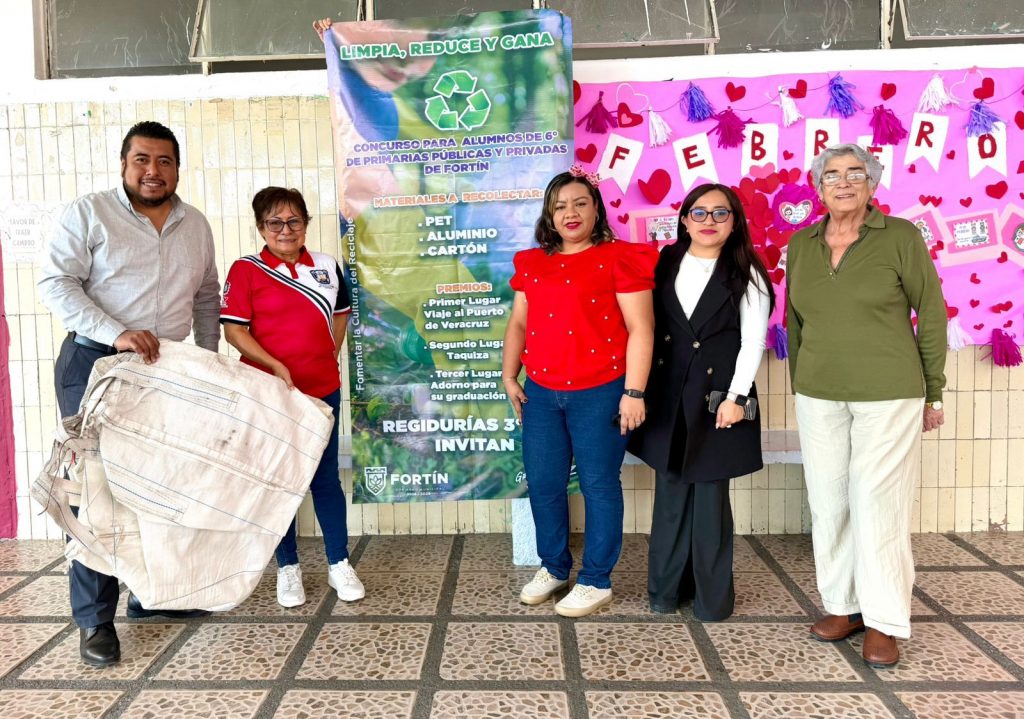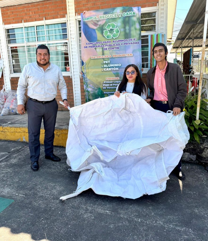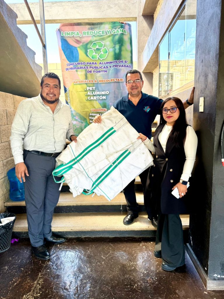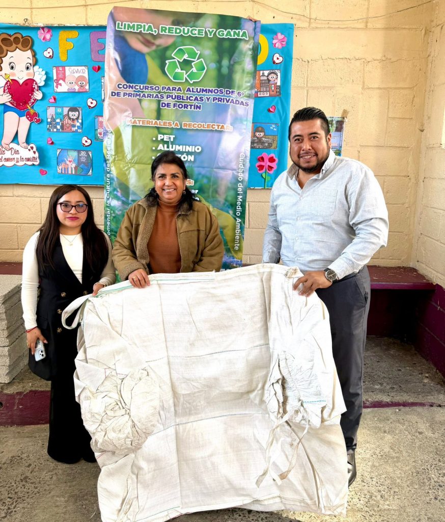 Fortín, Ver. – Las primeras cinco escuelas primarias participantes en el Concurso “Limpia, Reduce y Gana”, recibieron su Big Pack o Súper Saco (costal) en donde se colocarán los artículos para reciclar, como parte de las acciones para fomentar la cultura del reciclaje y el cuidado del entorno y al mismo tiempo premiar al plantel que colecte más PET, cartón y aluminio.