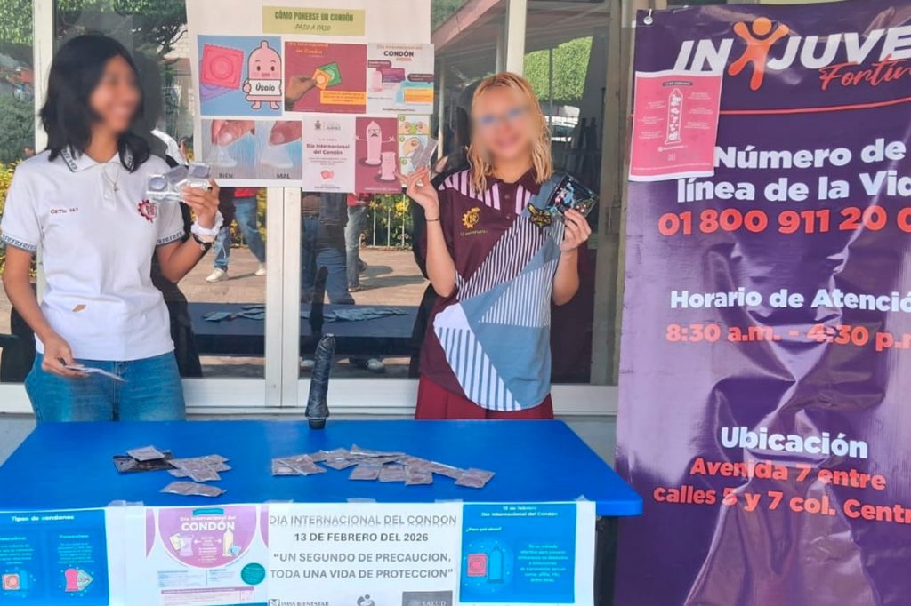 En coordinación con los promotores de la salud Claudio César Casal y Ernesto P. Ruiz Zárate de la Unidad de Salud IMSS Bienestar instalaron un módulo de atención donde se brindó orientación detallada a los estudiantes sobre el uso correcto del preservativo, con el objetivo central de orientar a los jóvenes para que tomen decisiones informadas y que protejan su proyecto de vida.