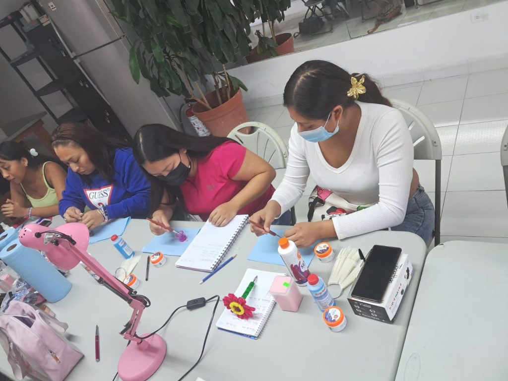 En el módulo de Colorines comenzaron a impartirse los talleres de bordado de listón, colorimetría, corte y confección, uñas acrílicas y corte de cabello básico, mismos a los que aún pueden incorporarse personas interesadas en aprender.