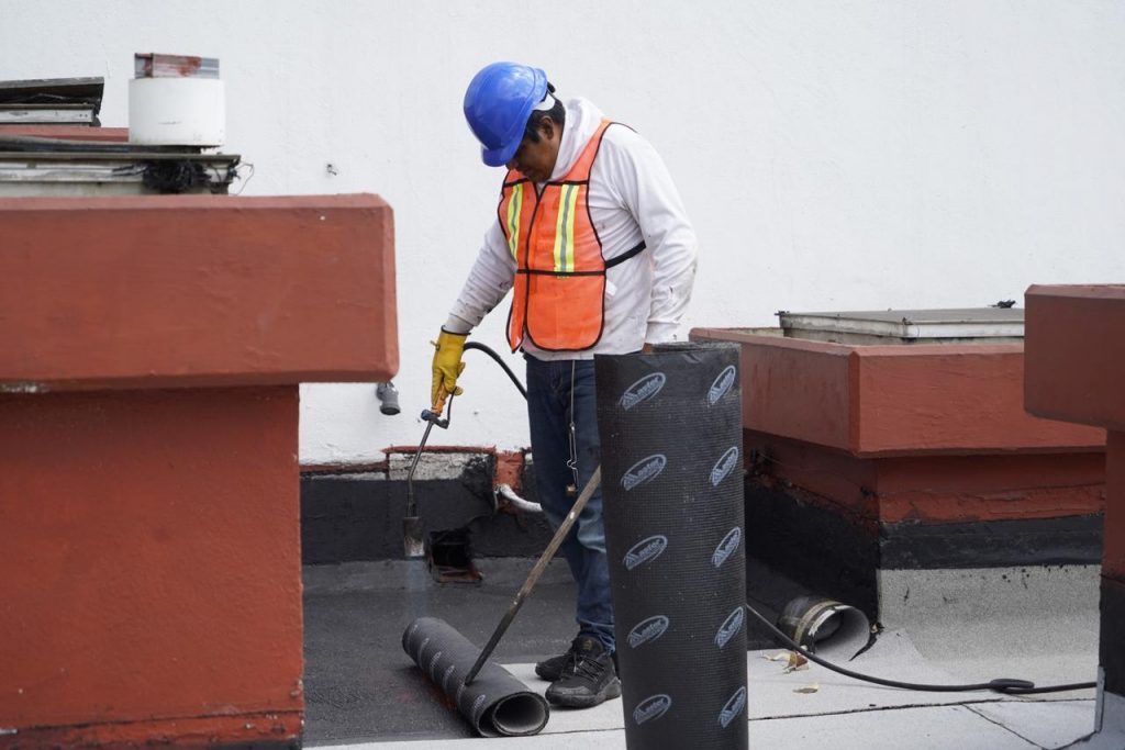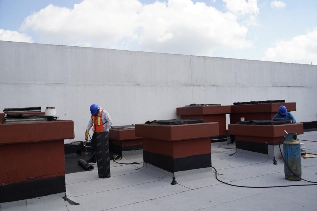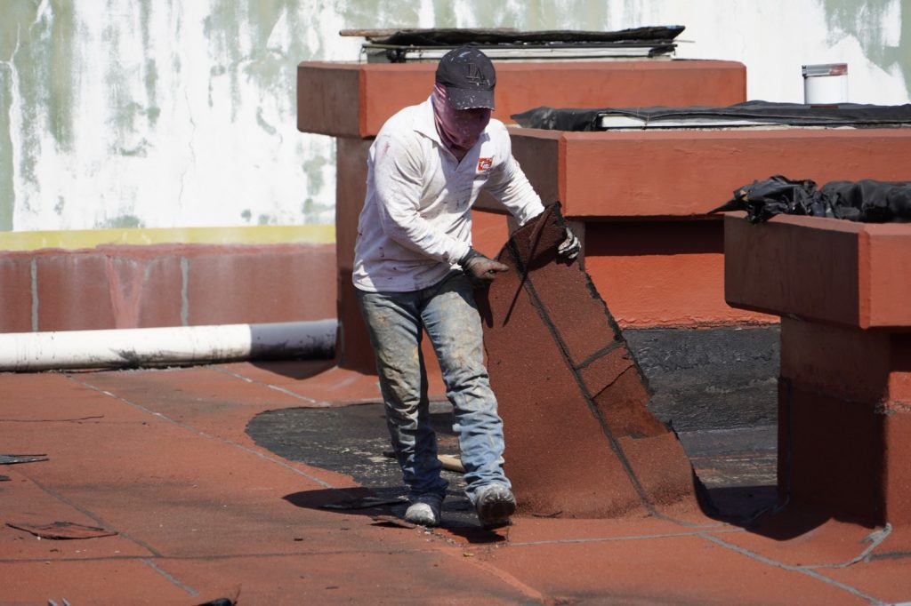 De acuerdo con Josué de Jesús Pulido Quintana, encargado de la Jefatura de Mantenimiento de Edificios, se realizó un sellado de fisuras con poliuretano, posteriormente se aplicó un primario asfáltico, y se instaló membrana prefabricada de base asfáltica, la cual se realiza por termofusión.