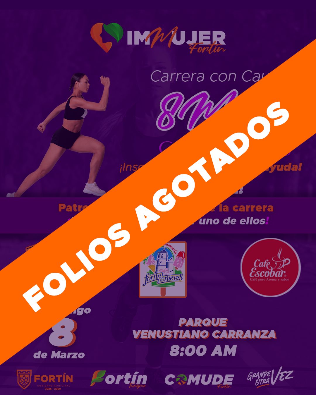 Fortín, Ver. – Todo un éxito resultó la convocatoria para la Carrera de la Mujer que se realizará el próximo domingo 8 de marzo en Fortín, organizada por el Instituto de la Mujer (IMMUJER), al reportar que los 350 folios disponibles ¡están agotados!, por lo que las autoridades agradecieron la buena respuesta de los fortinenses y vecinos de municipios aledaños.