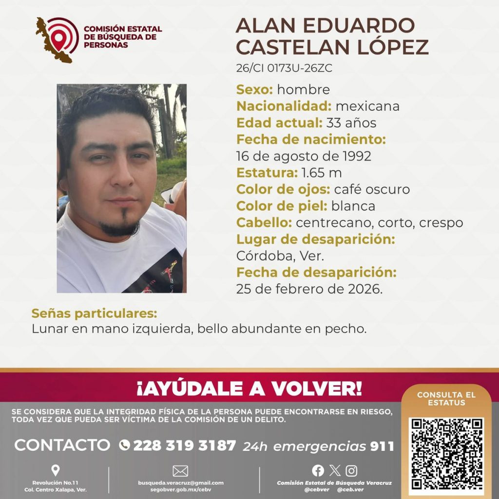 Córdoba, Ver. – La persona encontrada sin vida la tarde del pasado jueves 26 de febrero en un camino de terracería que conduce a la calle Emiliano Zapata, en la localidad de Peñuela, municipio de Amatlán de los Reyes, ha sido identificada como Alan Eduardo Castelan Lopez, de 33 años y originario de la ciudad de Córdoba.