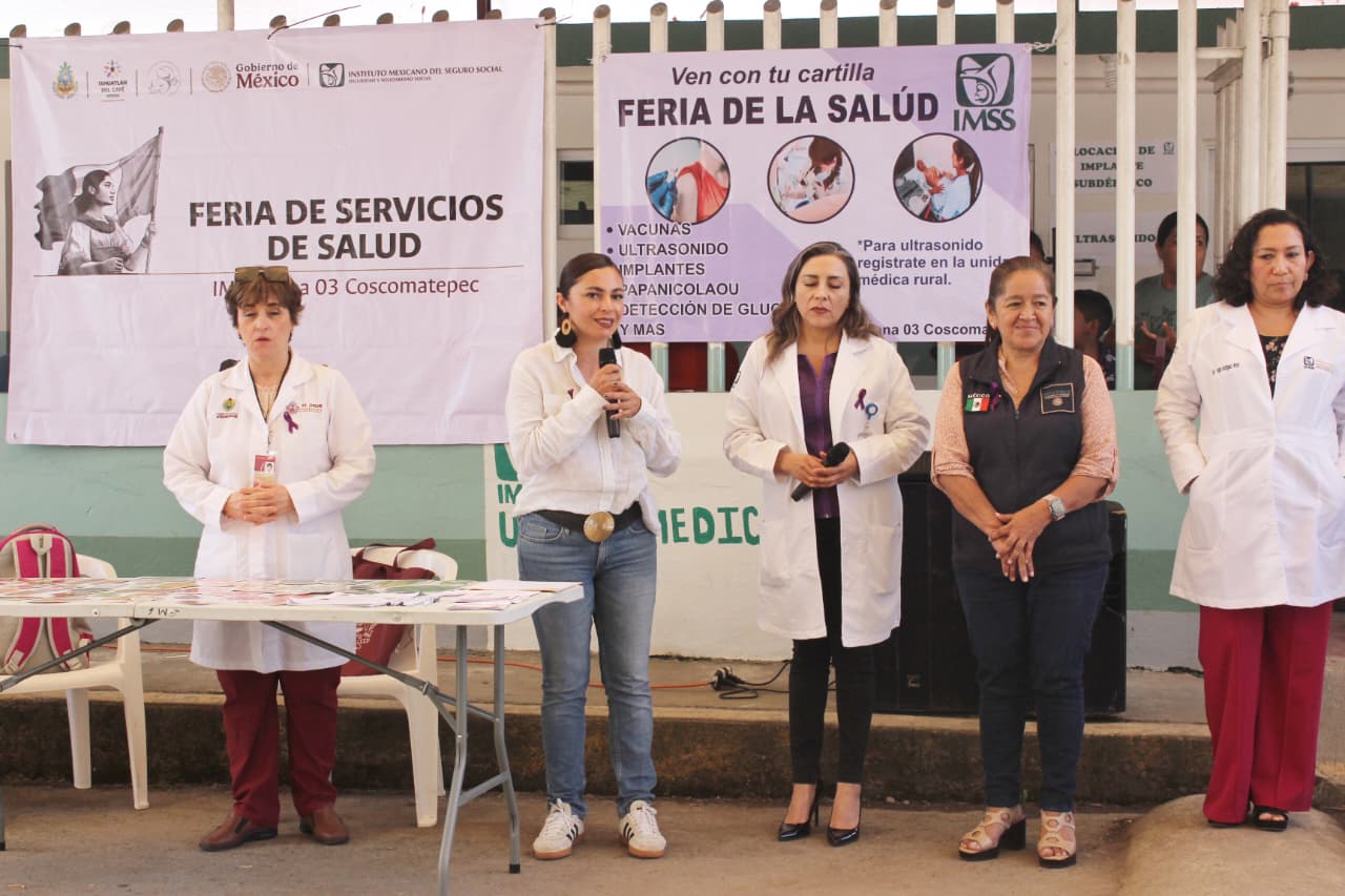 Ixhuatlán Del Café, 5 de marzo de 2026.- Más de 200 mujeres y hombres acudieron este jueves a la Feria de Servicios de Salud para las Mujeres realizada en la Unidad Médica de la comunidad de Ocotitlán, lugar dónde se ofrecieron diversos servicios en al menos diez módulos instalados por personal de IMSS, Servicios de Salud, Secretaría de Seguridad Pública, Derechos Humanos y ayuntamiento.