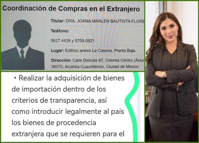 Entre las atribuciones de Bautista Flores en dicho cargo se encuentran realizar la adquisición de bienes de importación dentro de los criterios de transparencia así como introducir legalmente al país los bienes de procedencia extranjera que se requieran para el cumplimiento de los programas de trabajo.