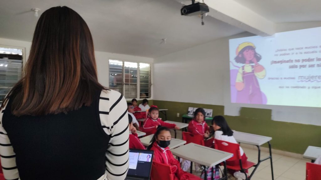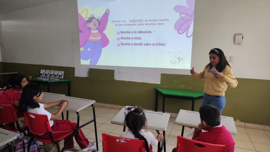 Además de hacer entrega de información a la ciudadanía en general, personal de IDIMI efectuó una actividad conmemorativa dirigida a las y los alumnos de la escuela Primaria General Ignacio Zaragoza de la colonia Hermenegildo Romero donde se explicó, de manera clara y acorde a su edad, la importancia de esta fecha, resaltando el valor de la igualdad, el respeto y la no violencia hacia las mujeres y las niñas.