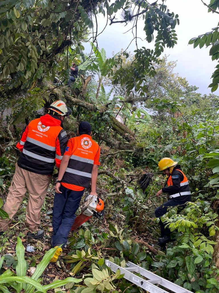 Por otra parte, se reportaron cables caídos en la carretera Fortín–Huatusco y en la comunidad de Tlacotengo, por lo que se acordonaron las zonas y se dio aviso al área de fibra óptica. De igual forma, se verificó un reporte por fuerte olor a gas en el Puente San Miguel.
