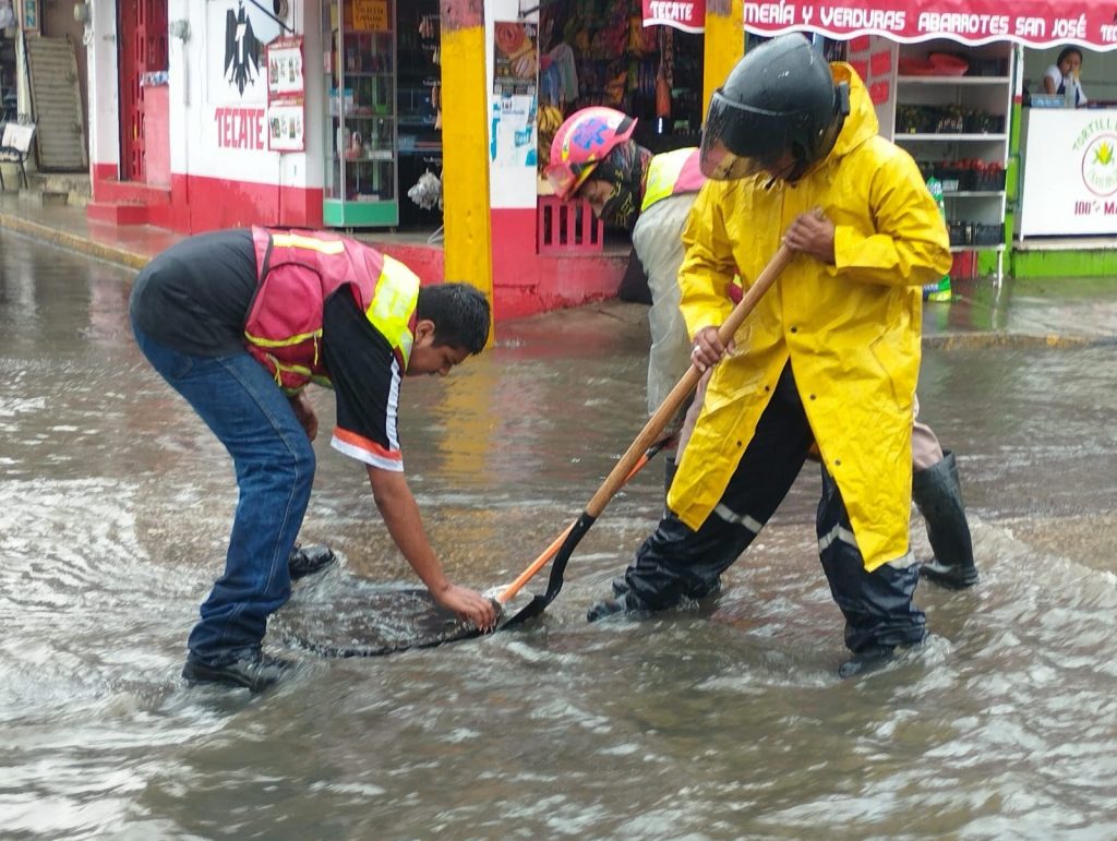 Entre las situaciones atendidas se reportaron inundaciones en calles y viviendas en colonias como Los Pinos, Santa Leticia, Ricardo Ballinas y Melesio Portillo, así como en el área del Mercado 3 de Agosto. Además, se brindó atención a traga tormentas obstruidos en la avenida Los Pinos, lo que generó acumulación de agua en la zona.
